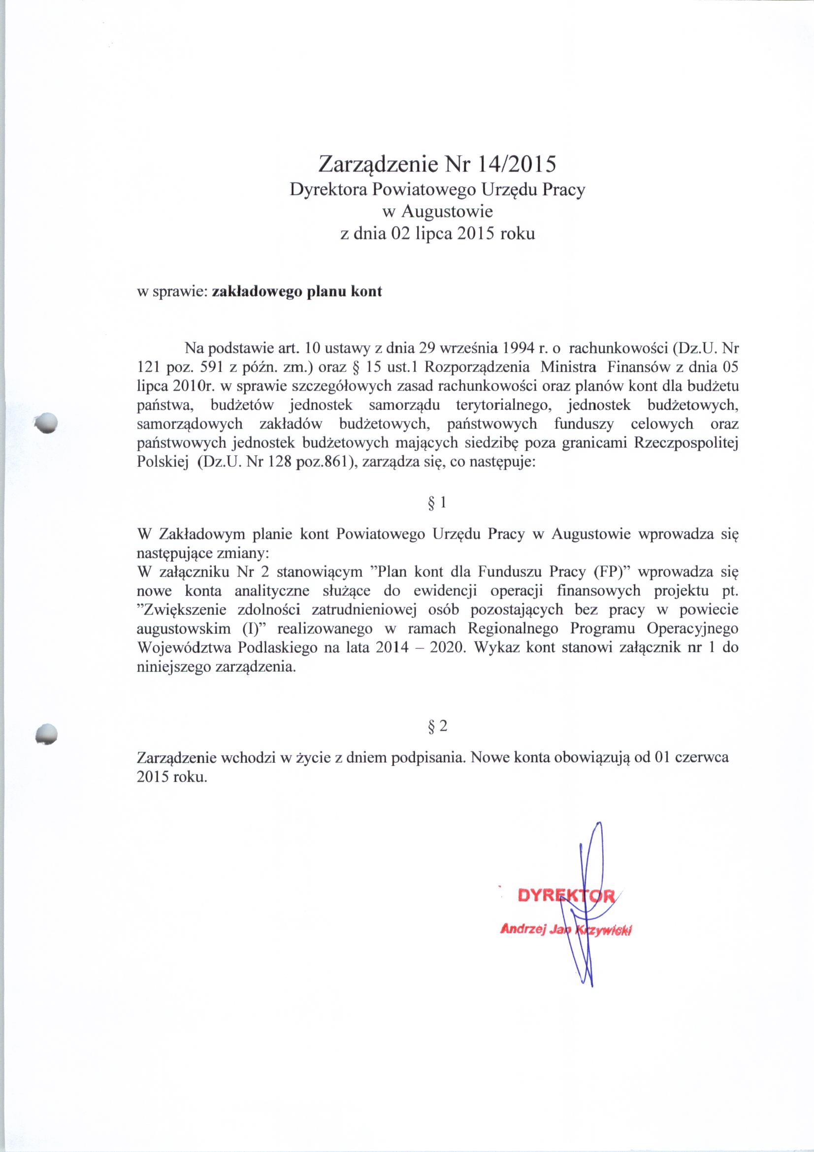 zarządzenie Nr 14/2015