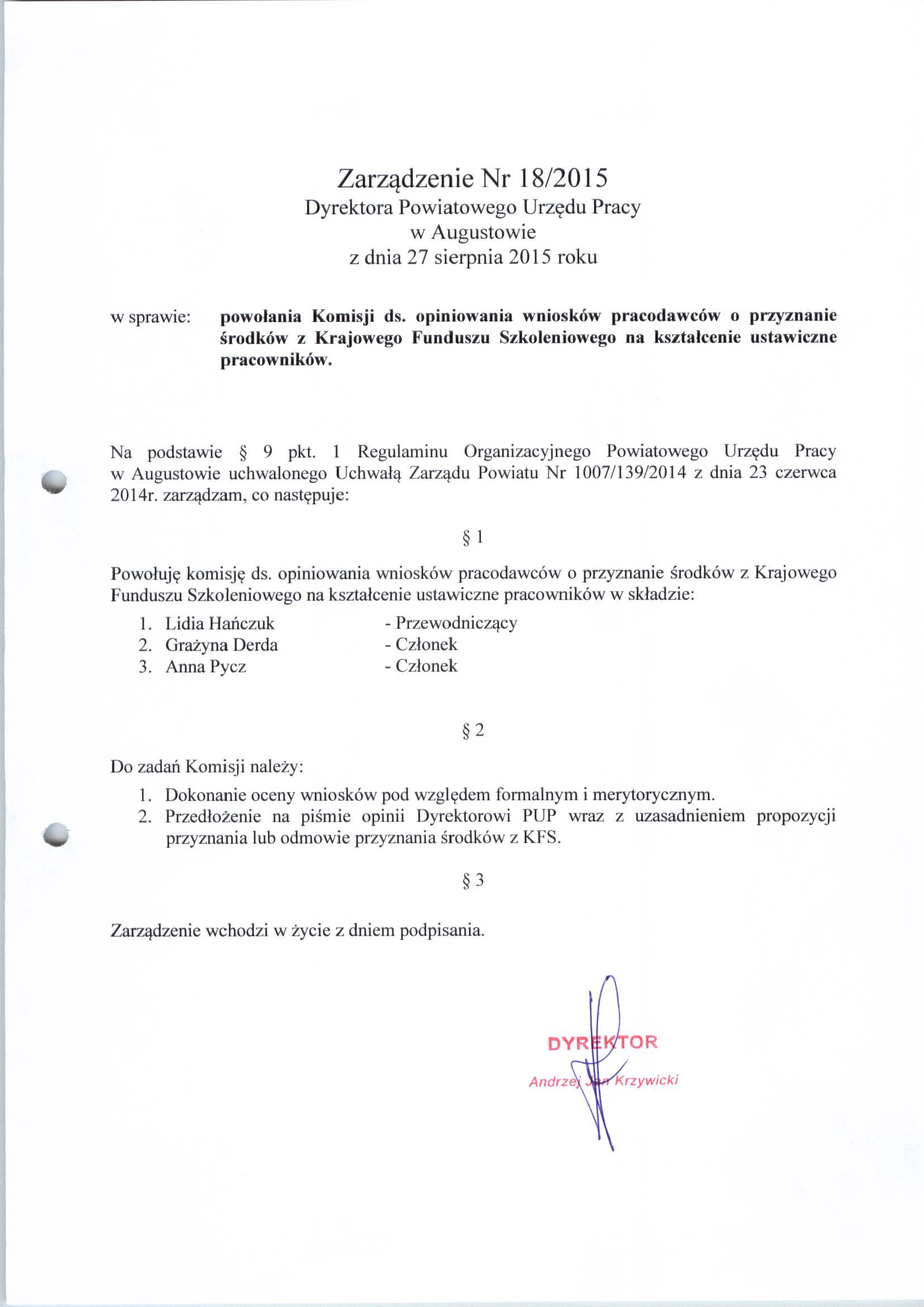 zarządzenie Nr 18/2015