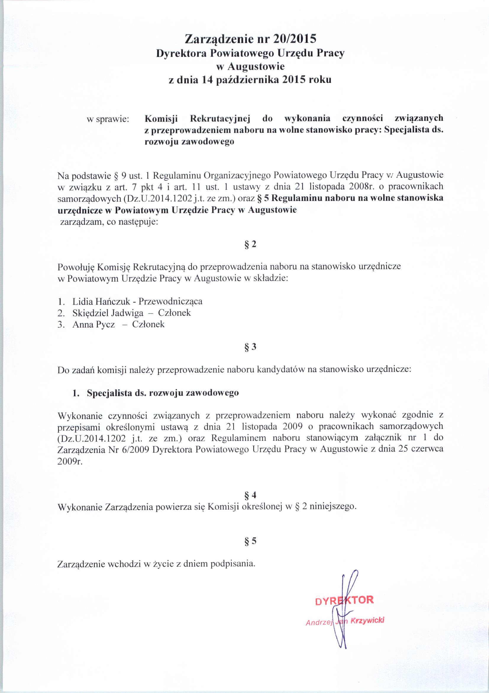 Zarządzenie nr 20/2015