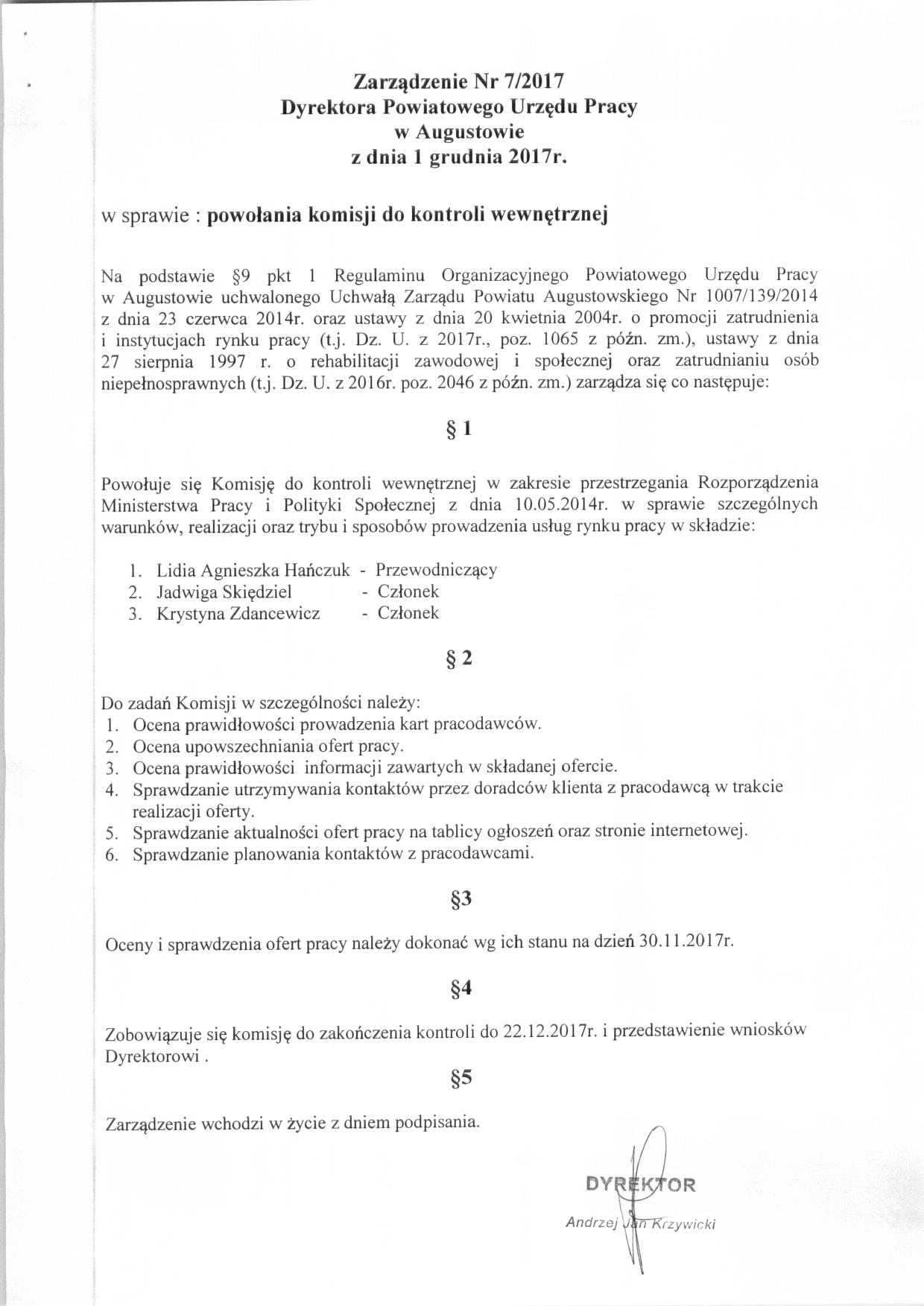 Zarządzenie nr 7/2017